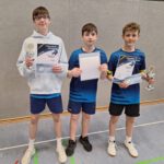 Damian holte sich souverän den Pokal für den 1. Platz. Bastian sicherte sich in seinem sehenswerten Spiel den 3. Platz. Beide erhielten Pokale, Urkunden und Geldpreise, Belohnung für Können und Durchhaltevermögen in einem sieben Stunden andauernden Turnier. Besonders erfreulich war, die gegenseitige Unterstützung unserer jugendlichen Spieler beobachten zu können – ein Ziel der Jugendarbeit des TTC Bärbroich.